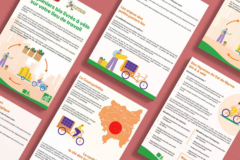 La Courcyclette (spécialisé en ventes et réparations de vélos) et leur partenaire Valbio IDF (association de maraîchage biologique), se sont associés pour proposer un service solidaire et écologique de livraison à vélo de petits paniers de légumes bios aux entreprises et leurs salariés dans les zones urbaines.